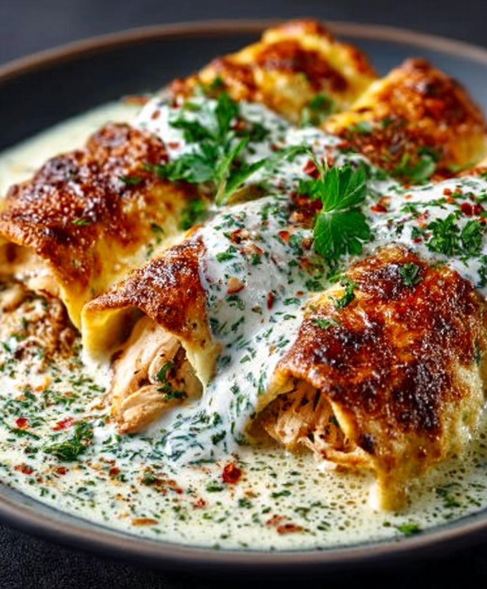 Proteinreiche Hühnchen-Enchiladas: mit einer köstlichen weißen Soße, eine gesunde Mahlzeit!