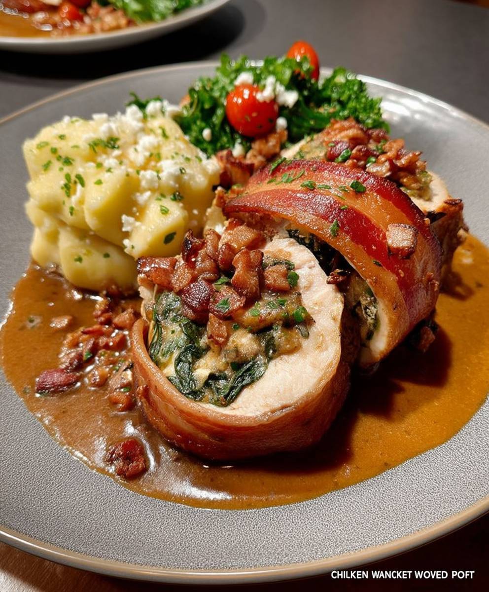 “Hähnchenfilet im Speckmantel mit Käsefüllung – Ein herzhaftes Festmahl!”
