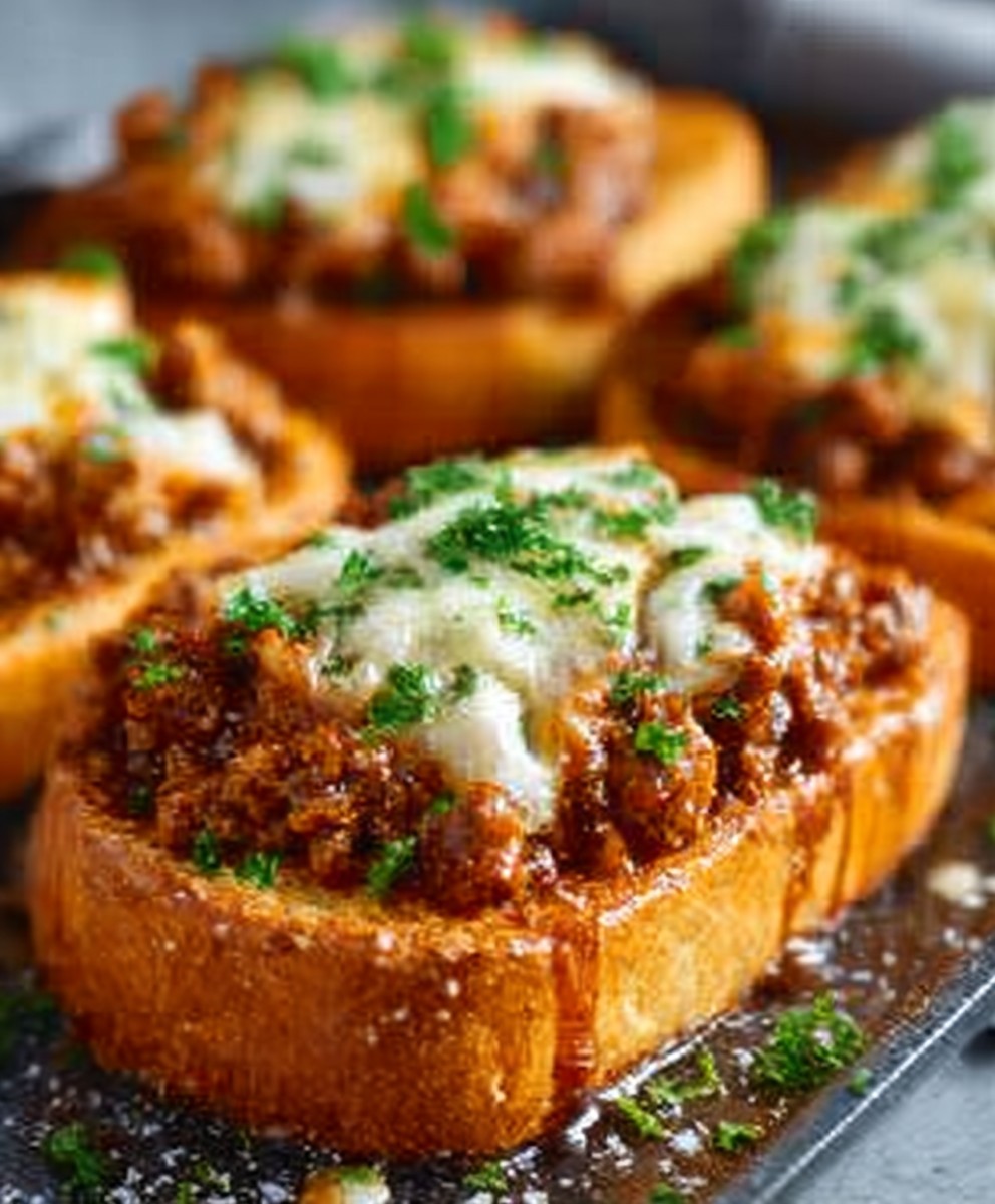 Offene Knoblauchtoast-Sloppy-Joes