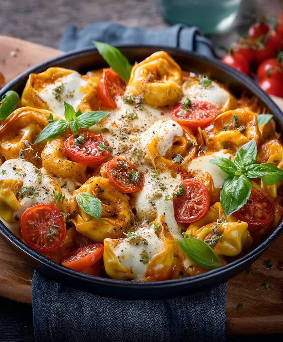 Tortellini-Auflauf mit Tomaten und Mozzarella (vegetarisches Rezept)