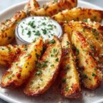 Diese knusprigen, würzigen Kartoffelspalten sind die perfekte Lösung für jede Mahlzeit, sei es ein schnelles Abendessen unter der Woche oder ein festliches Mahl am Wochenende. Sie bringen Wärme, Gemütlichkeit und jede Menge Geschmack auf den Tisch. Also, worauf warten Sie noch? Schnappen Sie sich ein paar Kartoffeln, den Knoblauch und den Parmesan und verwandeln Sie diese einfachen Zutaten in eine Beilage, die alle begeistern wird. Wir versprechen Ihnen, diese gebackenen Kartoffelspalten werden schnell zu einem festen Bestandteil Ihres Repertoires und zu einem Liebling in Ihrem Zuhause. Viel Spaß beim Nachkochen und noch mehr beim Genießen!